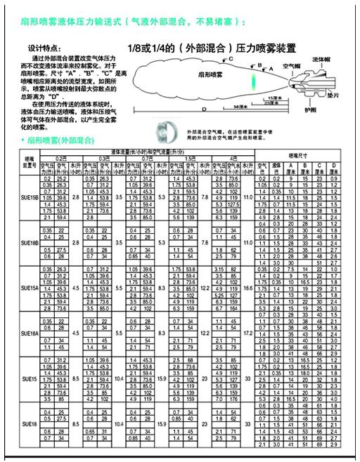 扇形噴霧液體壓力輸送式(氣液內(nèi)部混合,微細(xì)霧化):